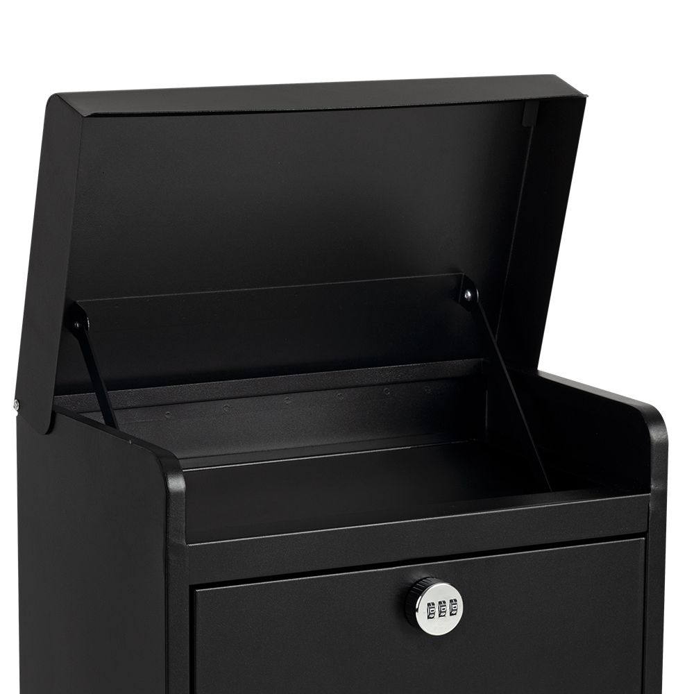 | Característica | Este buzón cuenta con un interior de gran capacidad, apto para recibir múltiples cartas. Una cerradura de combinación giratoria proporciona acceso seguro y sin llave. |