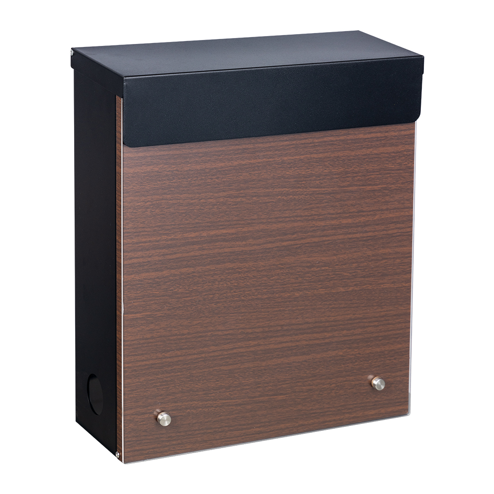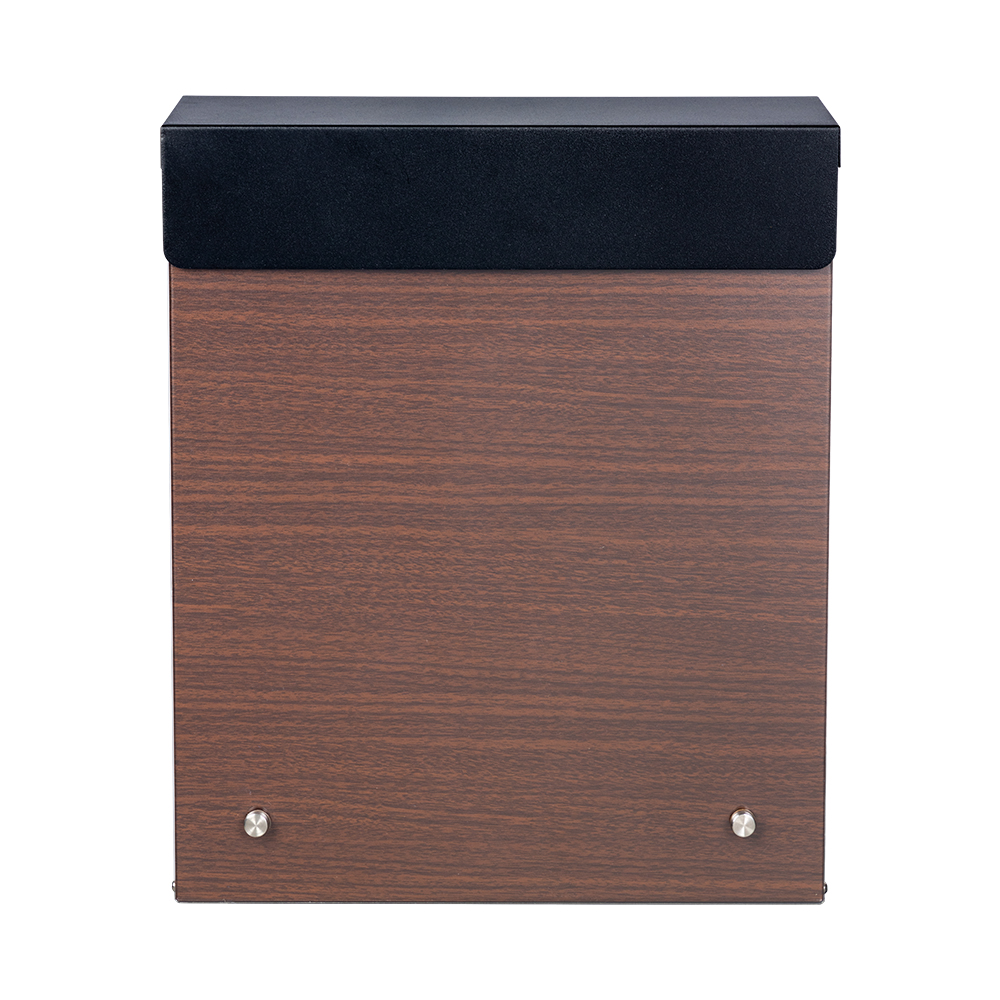 | Característica | Este buzón presenta un acabado de transferencia de agua con vetas de madera, que ofrece la apariencia de la madera natural con la durabilidad del metal. Se agrega un panel acrílico a la puerta de entrada para darle un toque decorativo moderno. |
