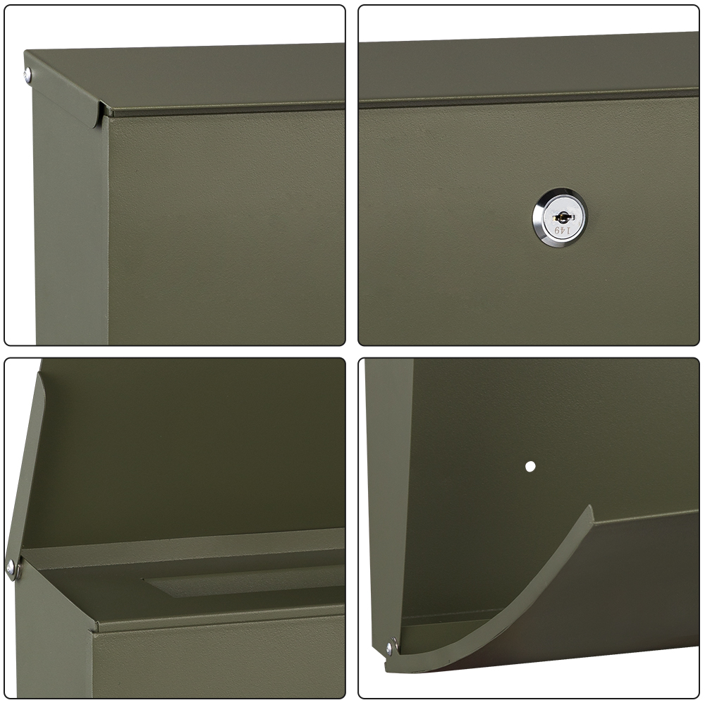 Durabilidad: dado que los buzones al aire libre están expuestos a los elementos, la durabilidad es crucial. Opta por materiales como acero inoxidable, aluminio o acero recubierto de polvo que puedan soportar condiciones climáticas variables sin comprometer la estética.