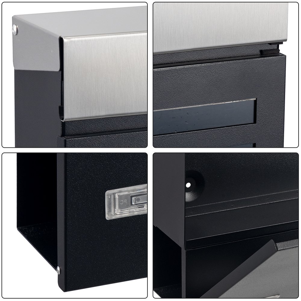 Da una impresión duradera con un buzón negro montado en la pared moderno que combina el estilo y el funcionamiento sin problemas, dando la bienvenida tanto a la utilidad como al diseño en el exterior de tu hogar.