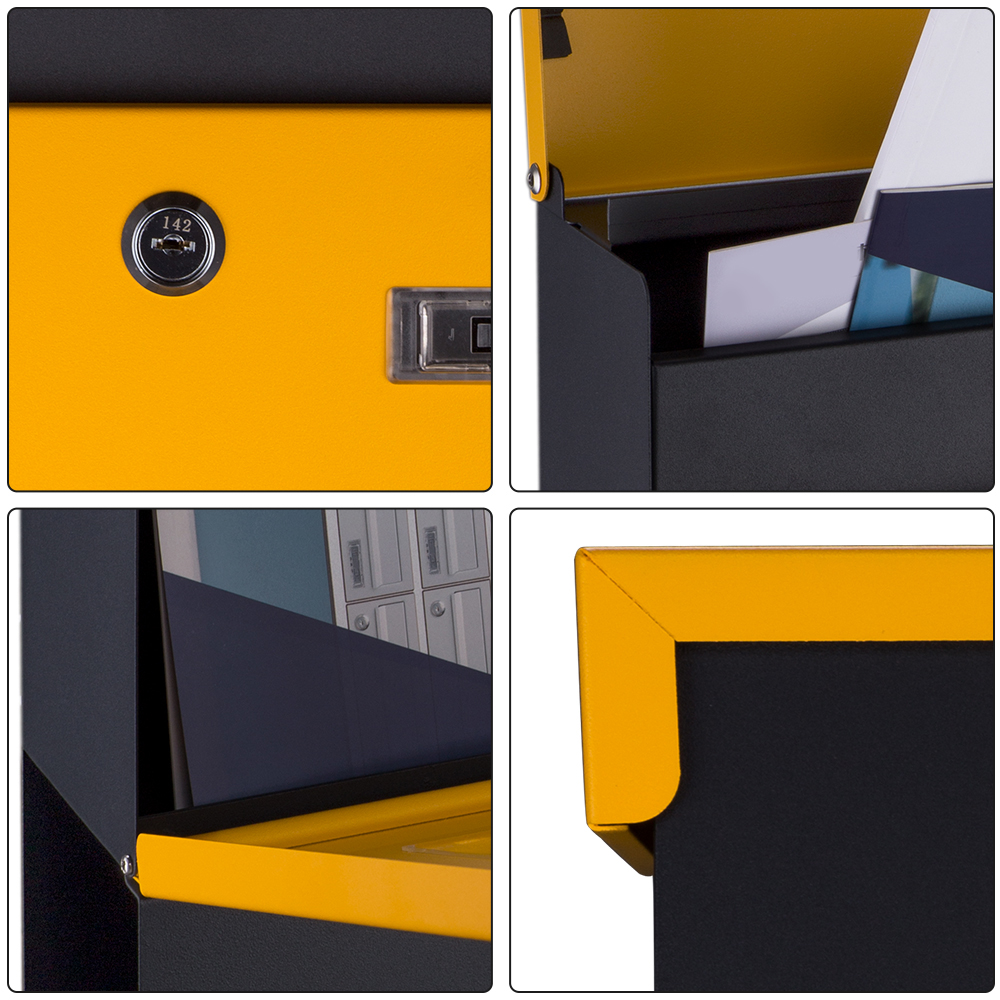 Durabilidad: dado que los buzones al aire libre están expuestos a los elementos, la durabilidad es crucial. Opta por materiales como acero inoxidable, aluminio o acero recubierto de polvo que puedan soportar condiciones climáticas variables sin comprometer la estética.