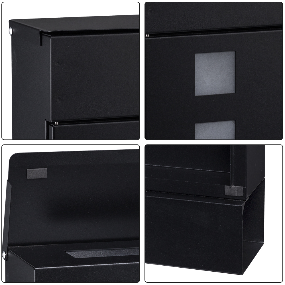 Da una impresión duradera con un buzón negro montado en la pared moderno que combina el estilo y el funcionamiento sin problemas, dando la bienvenida tanto a la utilidad como al diseño en el exterior de tu hogar.